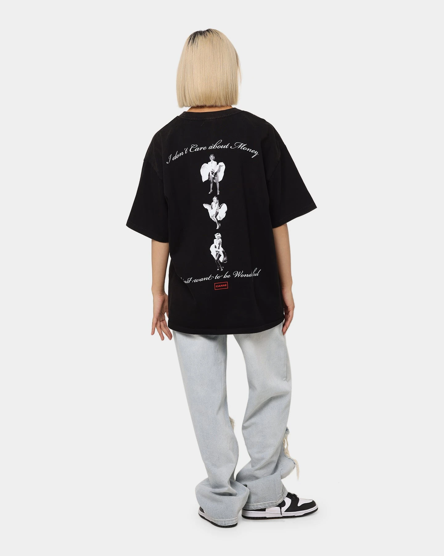 Carré is back with another epic collaboration, this time celebrating the iconic superstar Marilyn Monroe. The Carré X Marilyn Monroe Wonderful Vintage T-Shirt features printed graphics of the elegant Monroe, and a vintage wash that takes you back to her peak, elevating a basic tee to a statement. With dropped shoulders for a streetwear look, and a ribbed crewneck for ultimate comfort. Cop yours today!