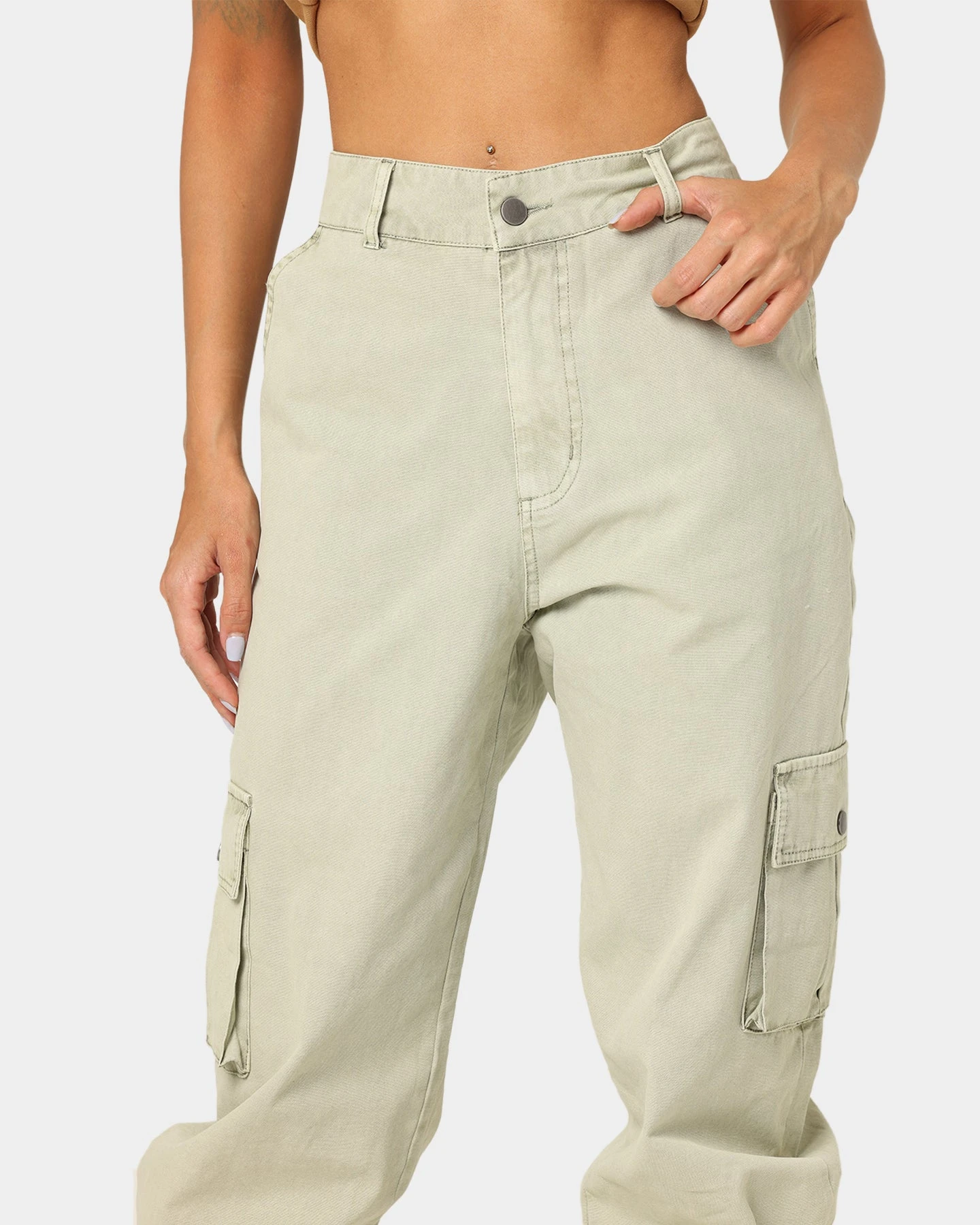 – Dual button-closure cargo pockets