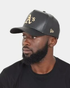 New Era Oakland Athletics “Black Tan PU Leather” 9FORTY K-Frame Snapback Black/Tan