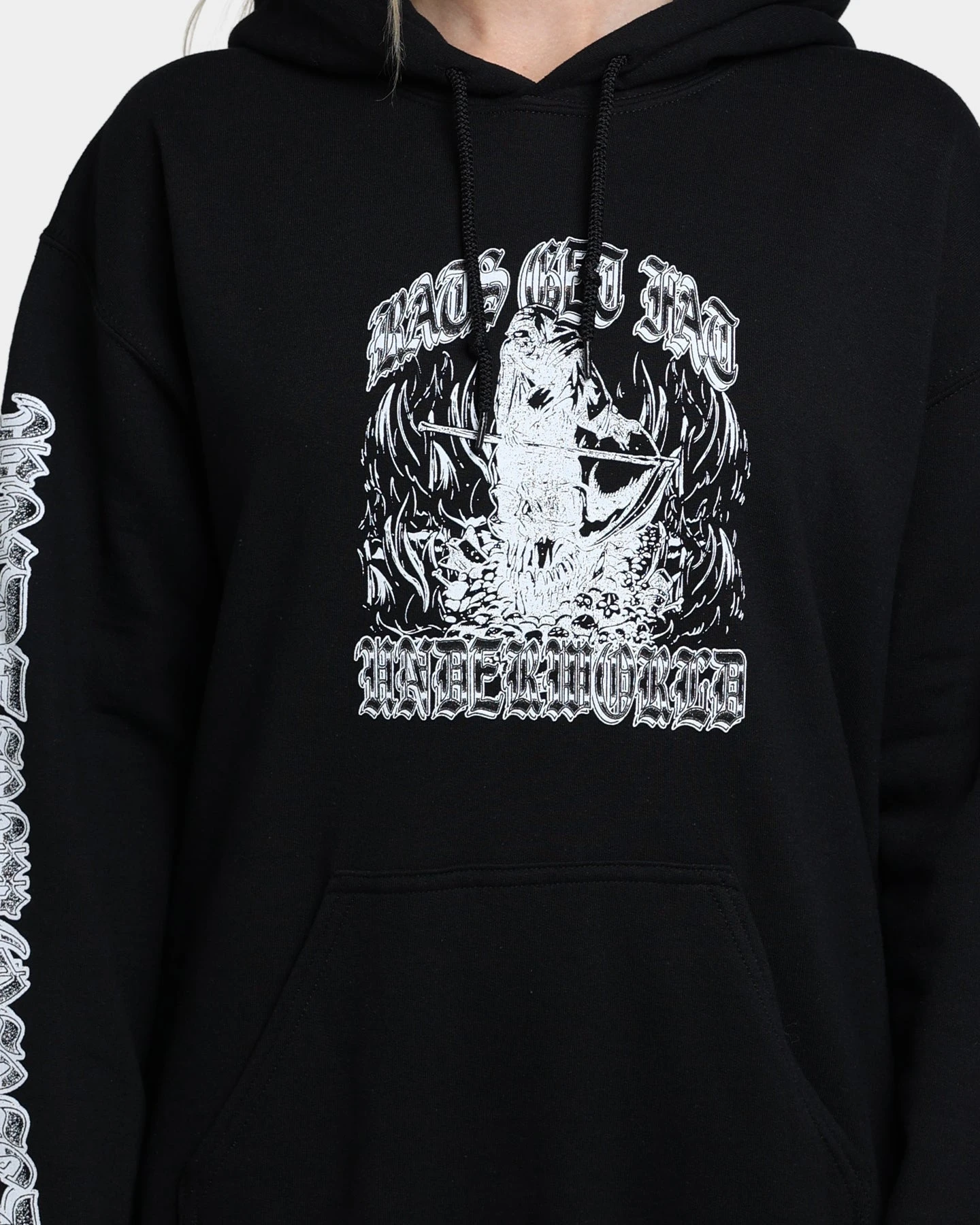 Light it up and let the devil out in the Underworld Hoodie from Rats Get Fat. Featuring fire custom graphics to the front, back, and sleeves on a premium pure cotton piece, this hoodie will create a dominant ‘fit. Cop yours today!