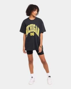 NATIONAL COLLEGIATE ATHLETIC ASSC Michigan Wolverines High Arch Logo Vintage T-Shirt Vintage Black